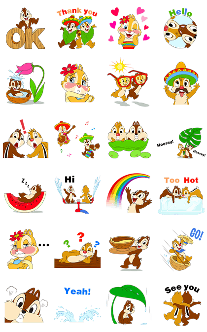 Everyone's favorite chipmunk duo is back in another set of animated stickers! They're back with their usual antics - this time with a summery theme! Chip 'n' Dale's cheerful expressions will be sure to make your summer full of delight!