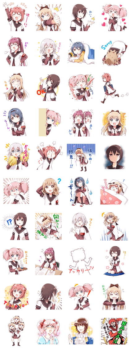 The surprisingly normal everyday world of Yuru-Yuri just landed on LINE! This set features slightly off-kilter yet impeccably cute girls saying all sorts of things that you only wish you could! Send them to your friends to make them chortle in delight.
