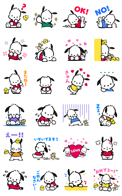 You'll be sure to love these stickers just as much as Pochacco likes his walks. This little doggie's as curious as can be, and he's full of energy too! Pep up your chats with Pochacco!