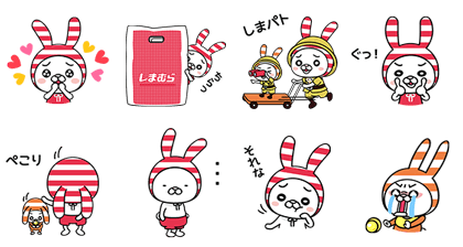 Shimamura's rabbit mascot is here, and this bunny is all striped out! Share them with your friends to add a little color to your chats! Friend Shimamura's official account to get this set for free! Available till Feburary 9, 2016.
