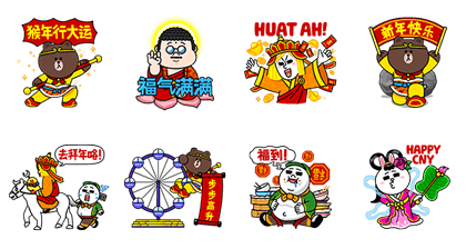 LINE Friends wish you a prosperous and happy Chinese New Year! Share greeting messages and stickers with your friends and families! Available till March 2, 2016.