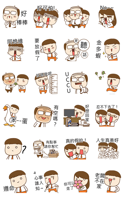 Although he shows no mercy in the office, the boss will add a touch of merriment to your chats. Say goodbye to boredom with your new boss! Get the stickers and put him under your control!