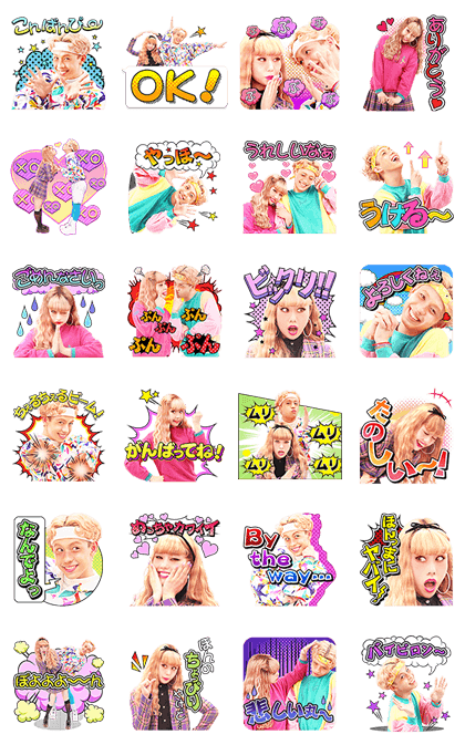 The Harajuku model couple takes LINE by storm in their very own sound sticker set! Express your emotions in full sound and color! When tapped, these stickers will play on iPhones even in silent mode.