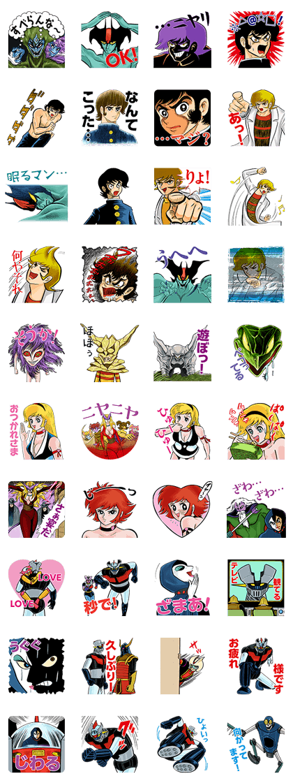 This delightfully dynamic sticker set features character's from Go Nagai's classics, including Devilman, Mazinger Z, and Cutie Honey. From gods and devils to busty androids, this set has it all!