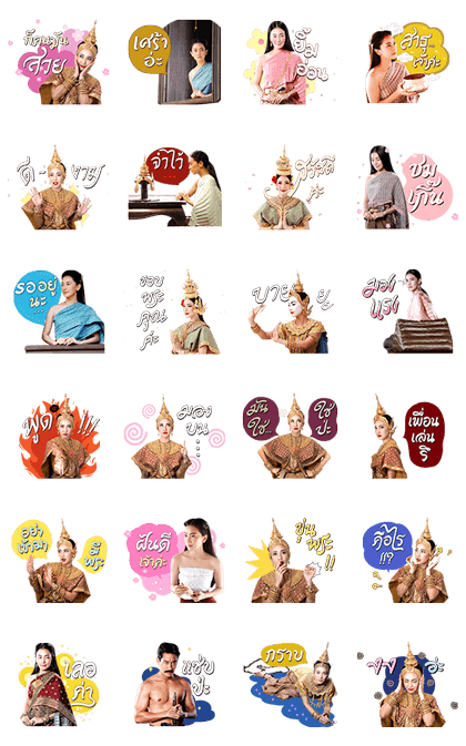 Decked out in gorgeous traditional Thai costume, Nune Woranuch makes her LINE sticker debut featuring unique Thai gestures and expressions!