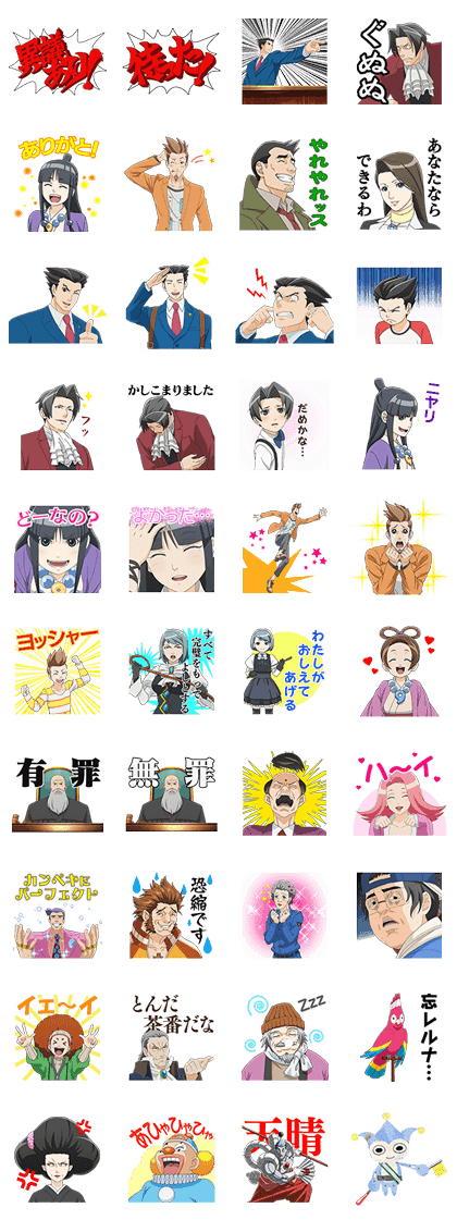 The anime adaptation of Ace Attorney now has its own sticker set! With so many of the series' diverse characters and famous catchphrases, regular use of these stickers should face no objection!