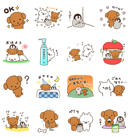 Wancl the Dog pairs up with the popular creators' sticker Penguin and Cat Days for this adorable sticker collaboration! You can't go wrong with any of the cute stickers in this set of 16! Let them make your chats a lot more fun! Friend FANCL's official account to get the set of free. Available till November 28, 2016.