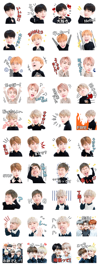 The popular hip hop boy band from Korea makes its LINE sticker debut! Let the boys of BTS fire up your chats with a variety of fun expressions!