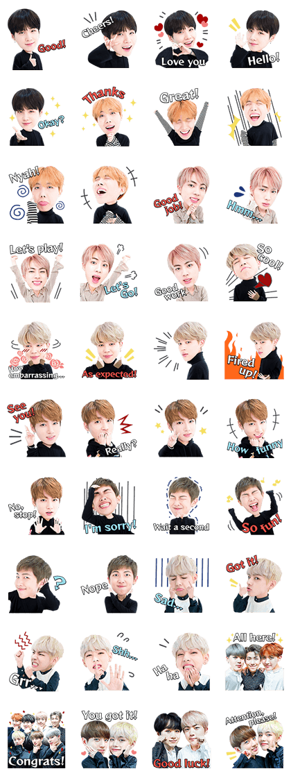The popular hip hop boy band from Korea makes its LINE sticker debut! Let the boys of BTS fire up your chats with a variety of fun expressions!