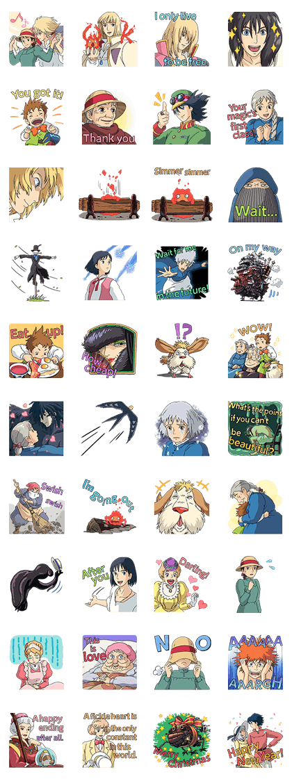 Howl's Moving Castle from Studio Ghibli comes to LINE with its own sticker set! It's filled with all your favorite scenes and characters from the movie. Bring Howl, Sophie, and the rest to your chats!