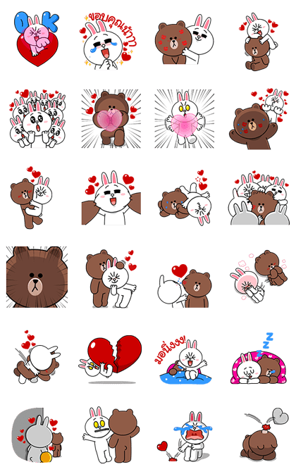 Brown and Cony are back with heaping helpings of hearts in this love-crazed sticker set. Send your hottest feelings to your one and only and watch the hearts fly! Includes special paired stickers too!