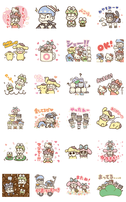 The Osomatsu sextuplets are back in another desperate bid to get in good with their female fan base. More fan service awaits as the brothers don outrageously adorable Sanrio character outfits in this second collaboration sticker set, now in animated form!