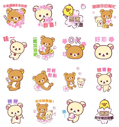 It's cherry blossom time for Rilakkuma and friends in this special springtime sticker set. Send your support and love to friends and family in the relaxed way that only Rilakkuma can! Available till April 18, 2017.